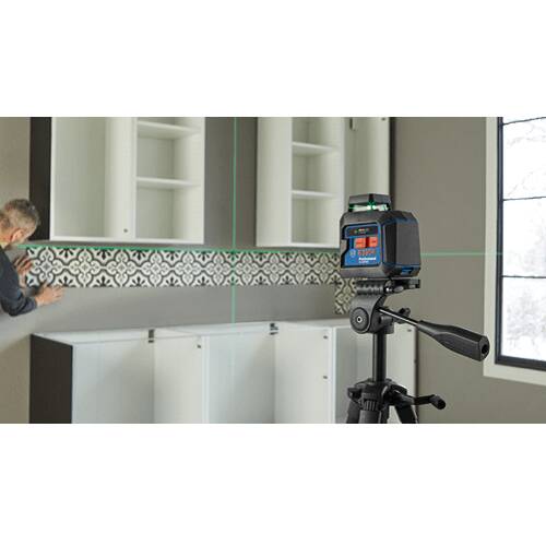 The Bosch GLL50-40G green-beam self-leveling 360° uses green-beam technology and provides 360° coverage to level with one setup point for an entire room. It produces a vertical line, 360° horizontal plane, and cross-line modes – for a broad array of alignment and leveling applications.