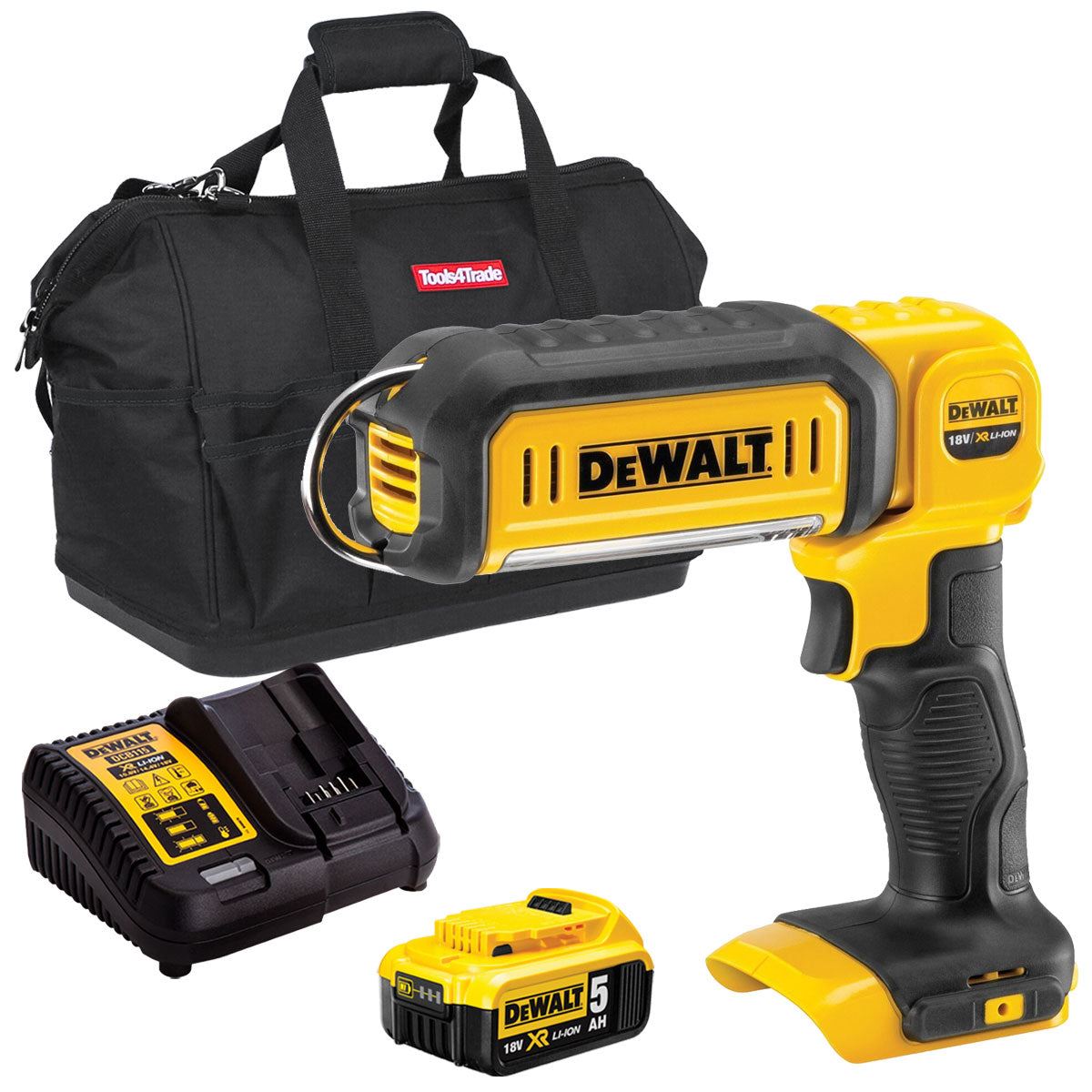 Dewalt DCL050N 18V Handheld LED Work Light Torch with 1 x 5.0Ah Battery Charger & Bag
