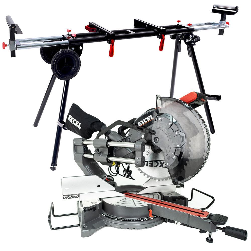 Excel 12″ 305mm Sliding Mitre Saw Double Bevel 1800W/240V with Laser & Universal Wheel Stand