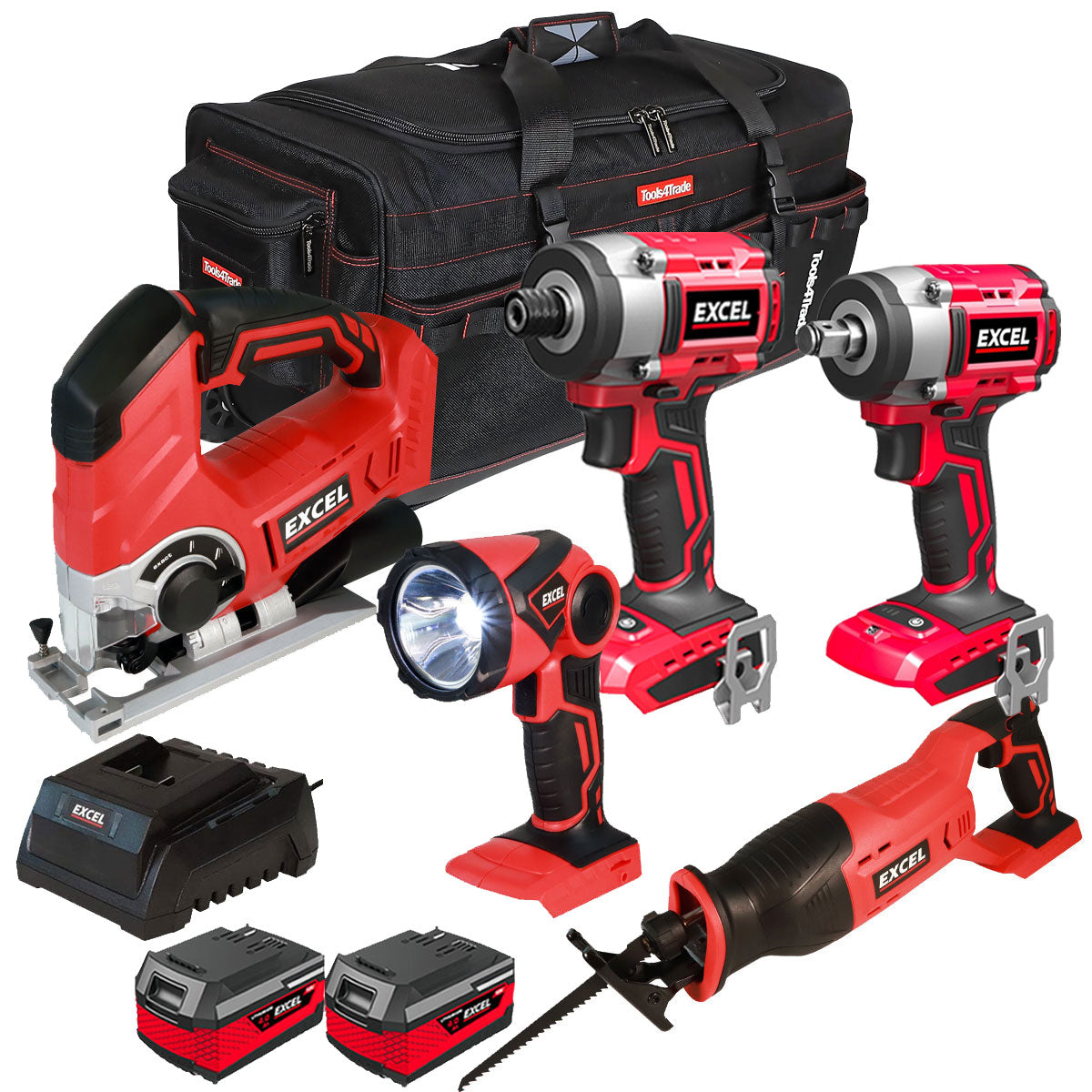 Excel 18V Cordless 5 Piece Tool Kit with 2 x Batteries & Charger in Bag EXL5233