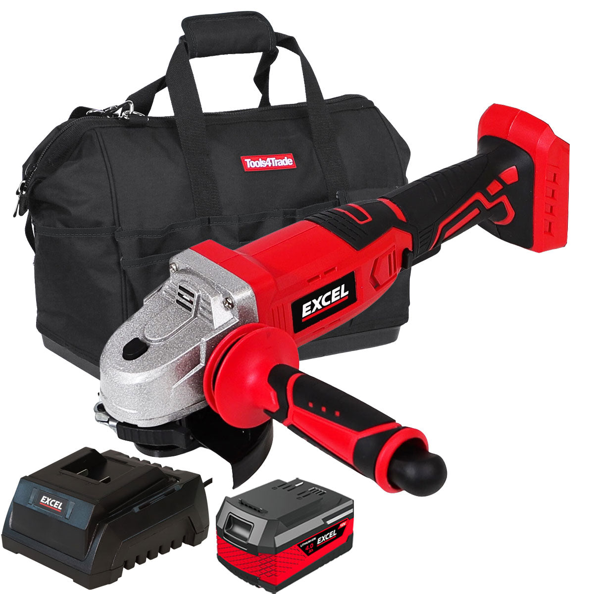 Excel 18V Cordless Angle Grinder 115mm with 1 x 4.0Ah Battery Charger & Bag