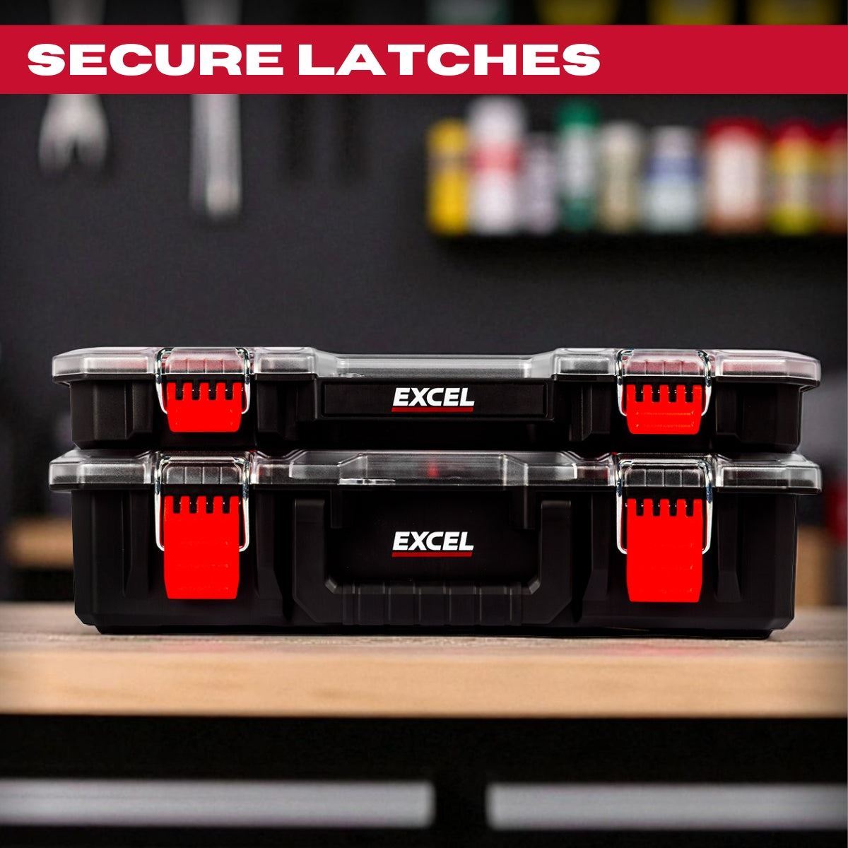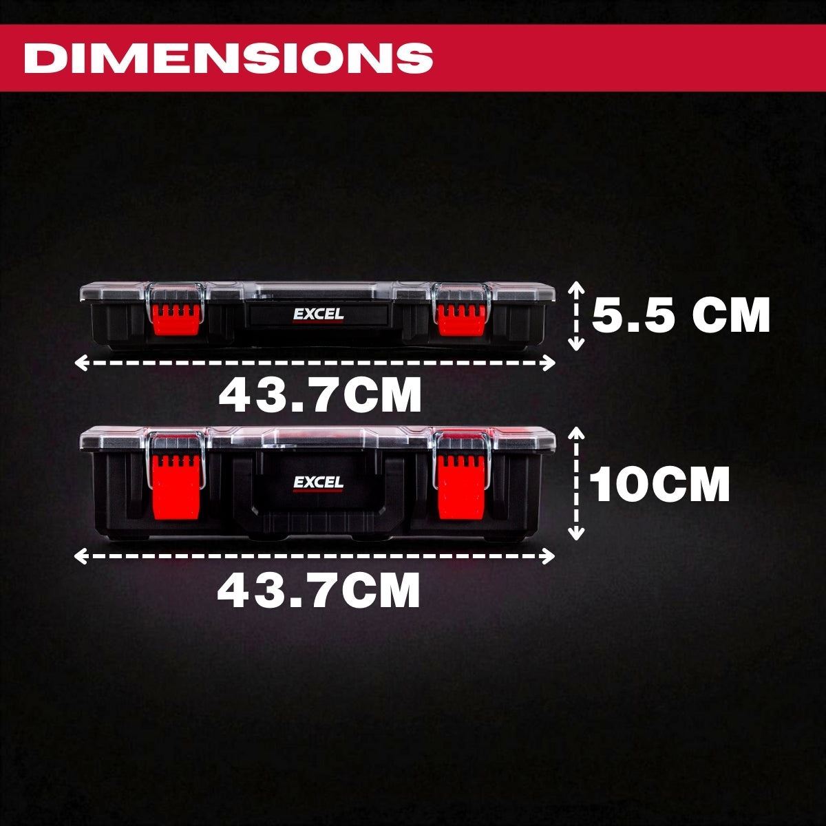Excel 2-in-1 Tool Organiser Case, Portable Storage with Custom Dividers & Clear Lid