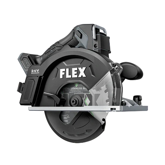 Power through a variety of metal including sheets, conduit, and struts with up to 4,500 RPM using the FLEX 24V 5-7/8” Metal Cutting Circular Saw. This cordless metal cutting circular saw features a high-efficiency chip collection system that captures metal shards with an easily removable disposal box for maximum productivity. The metal cutting saw has a clear viewing window to maintain visibility to your cut line while blocking flying chips as you cut. The metal cutting saw includes a 5-7/8” 36-tooth ceramic carbide metal cutting circular saw blade built with an ACFR tooth design and thin kerf for demanding metal cutting applications. A removable auxiliary handle adds stability for two-handed operation while punched steel shoe ensures added durability with its 2-1/4-inch cut capacity. A rafter hook allows easy storage between cuts. This battery-powered metal cutting circular saw delivers the FLEX Advantage of unmatched battery power, runtime, and fast charging (batteries and chargers sold separately). It’s all protected by the FLEX Limited Lifetime Warranty when registered within 30 days of purchase at registermyFLEX.com through December 31, 2025.