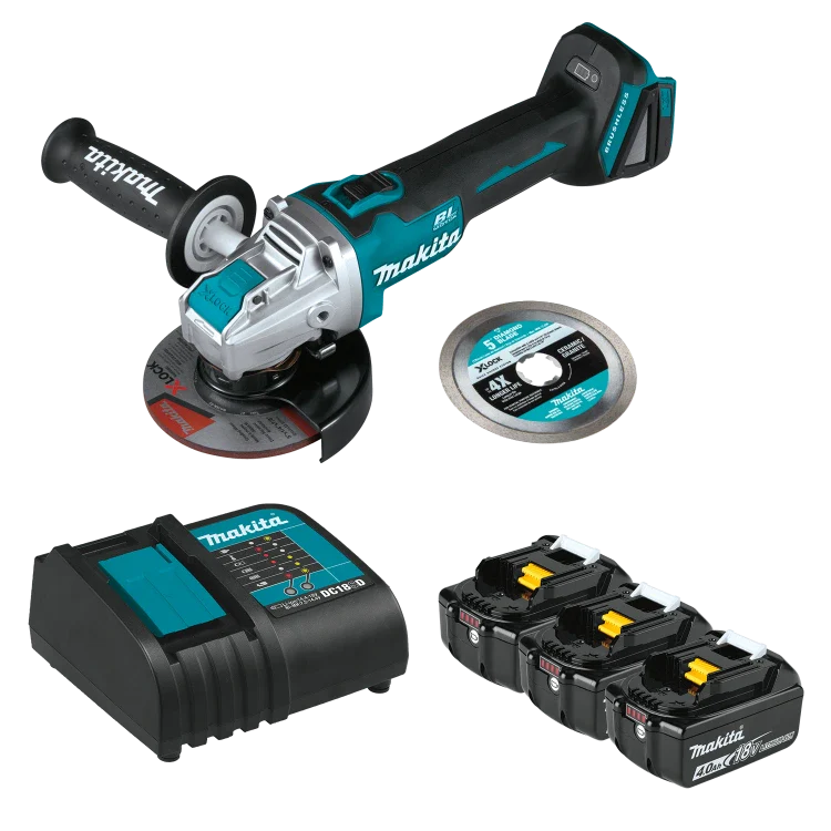 The 18V LXT® Battery and Charger Starter Pack (4.0Ah) with bonus X-LOCK Grinder (BL1840BSCX3) is an ideal way to expand current tool and battery count or to start new on the platform. The Battery and Charger Starter Pack features three (3) 18V LXT® 4.0Ah Batteries (BL1840B), one (1) 18V LXT® Charger (DC18SD), one (1) 18V LXT® Brushless 4-1/2” / 5″ X-LOCK Angle Grinder, with AFT® (XAG25Z), and one (1) X-LOCK 5″ Continuous Rim Diamond Blade (E-07406). The 18V LXT® 4.0Ah Batteries provides up to 35% more run time per charge compared to BL1830, while the 18V LXT® Charger charges an 18V LXT® 4.0Ah battery in 90 minutes giving the user longer run times with less time spent charging. The 18V LXT® Brushless 4-1/2” / 5″ X-LOCK Angle Grinder, with AFT® (XAG25Z) gives the user a powerful and versatile grinder with the X-LOCK system for five-times faster blade changes. The X-LOCK 5″ Continuous Rim Diamond Blade is engineered with an optimum bond matrix that provides a faster, longer lasting, and smoother cutting diamond blade that is ideal for cutting hard materials including ceramic, granite, porcelain, tile, and stone.