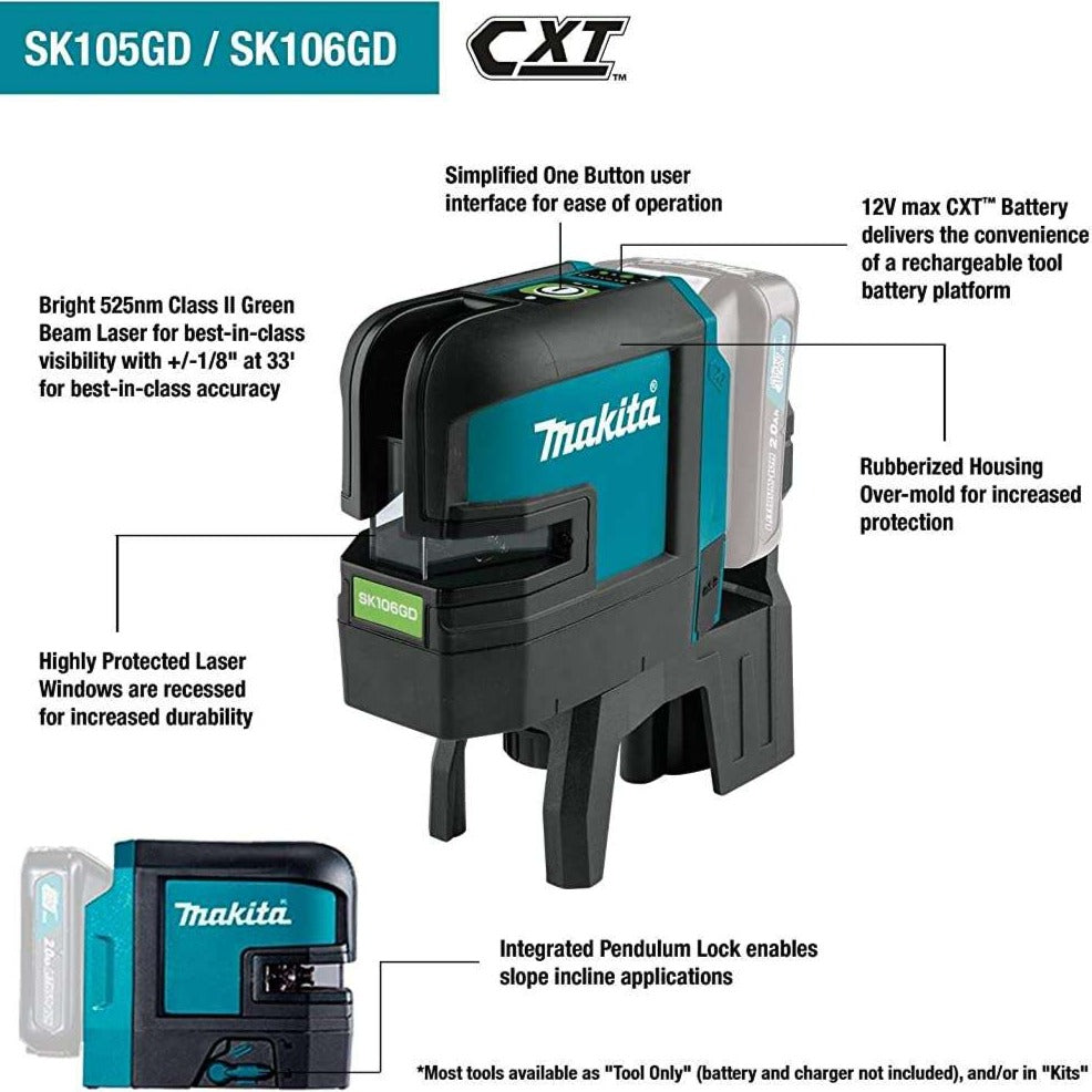 Makita SK105GDNAX 12V max CXT Lithium-Ion Cordless Self-Leveling Cross-Line Green Beam Laser Kit (2.0Ah)