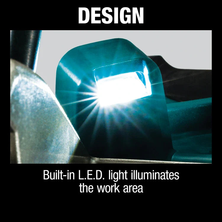 The XBP04Z weighs just 7.9 lbs. (with battery, sold separately) with a more compact design at 15-1/2” long and an ergonomic shape that fits like a glove for reduced operator fatigue. It has a 2-5/8” x 2-5/8” cutting capacity. The XBP04Z is also equipped with a built in L.E.D. light that illuminates the work area for more efficient work, as well as rubber bumpers and a removable hook.