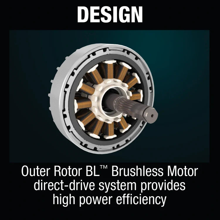 • Makita-built Outer Rotor Brushless Motor direct-drive system provides power equivalent to a 22cc gas chain saw