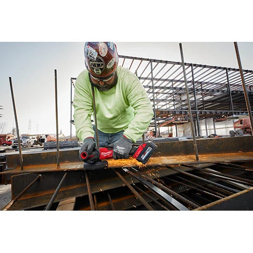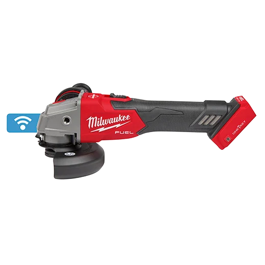 Our M18 FUEL™ 4-1/2″ / 5″ Braking Grinder with ONE-KEY™ Slide Switch, Lock-On is the next advancement in power and performance of cordless grinders while enhancing safety with its RAPIDSTOP™ Brake. The M18 FUEL™ 4-1/2″ / 5″ Braking Grinder with ONE-KEY™ generates 11A corded power to complete the toughest grinding and cutting applications. The POWERSTATE™ Brushless Motor delivers maximum sustained power and 8,500 RPM to remove material faster and increase productivity. REDLINK PLUS™ Intelligence ensures unmatched levels of performance, protection, and compatibility. The RAPIDSTOP™ Brake provides stop times under 2 seconds with an abrasive disc. Our M18 FUEL™ 4-1/2″ / 5″ Braking Grinder with ONE-KEY™ includes an electronic clutch for kickback protection, as well as overload protection to maximize motor life. Compatible with ONE-KEY™, this grinder wirelessly connects to a smartphone to track and manage the tool, providing you with visibility to where tools are across your network of jobs. The M18™ REDLITHIUM™ HIGH OUTPUT™ XC6.0 Batteries (not included) deliver 50% more power while running 50% cooler than the M18™ REDLITHIUM™ XC Batteries. Experience faster accessory changes, and less downtime with tool-free accessory and guard adjustments, while remaining fully compatible with the most common accessories in the market. The MILWAUKEE® M18 FUEL™ 4-1/2″ / 5″ Braking Grinder with ONE-KEY™ is the next level of jobsite productivity and enhanced safety in cordless grinders.