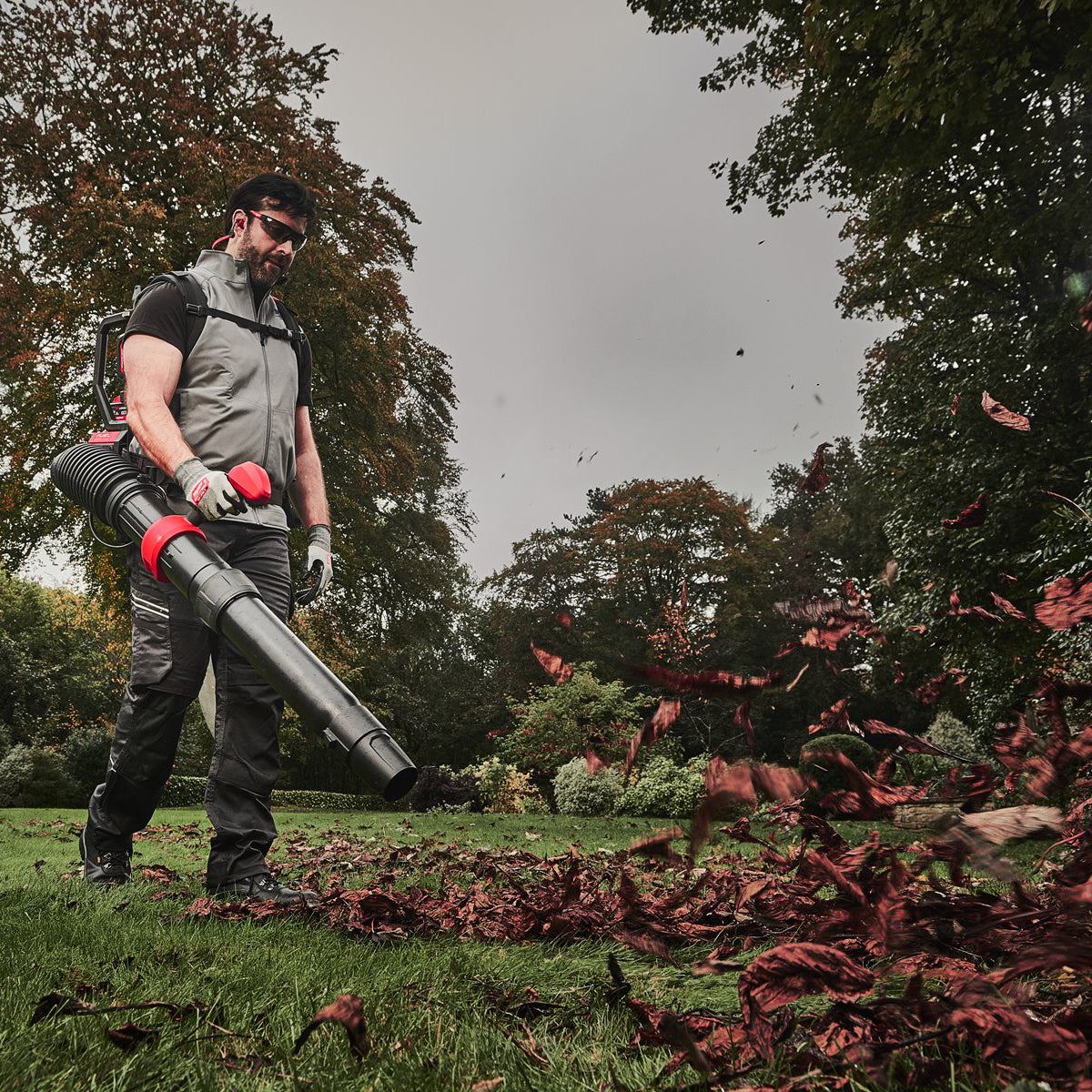 2 x 18V dedicated backpack blower with a padded back pad and padded adjustable straps for extreme comfort