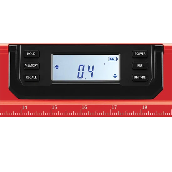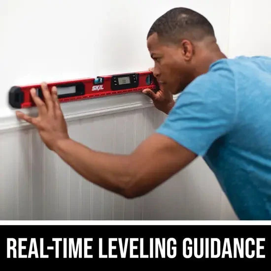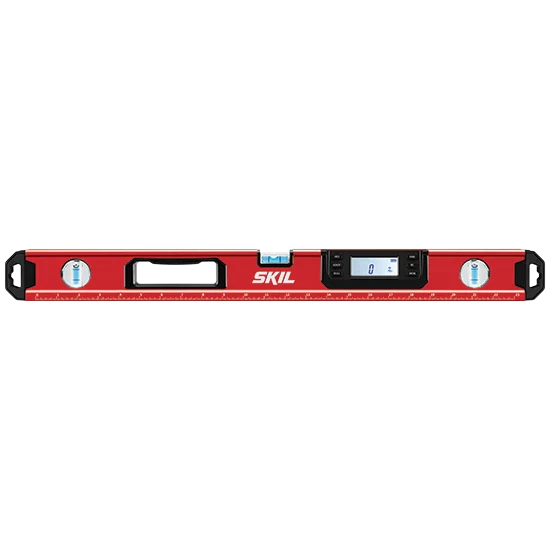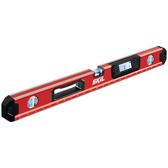 The SKIL 24 IN. digital level is easy to use and packed with features. Its longer length makes it ideal for leveling across several pictures, putting up wider shelves, installing cabinets and lots of other DIY projects around the house. The high-contrast blue vials are highly accurate and easy to see. The digital LCD screen is backlit, so you can read it from any perspective, and adjusts to the correct orientation however you hold it. Arrows and optional audible tones guide you to the perfect angle, and the Hold feature allows you to freeze the value of one angle so you can check it against another. The Memory feature lets you store 10 values and reference them later. A magnetic edge makes the level especially easy to use one-handed.