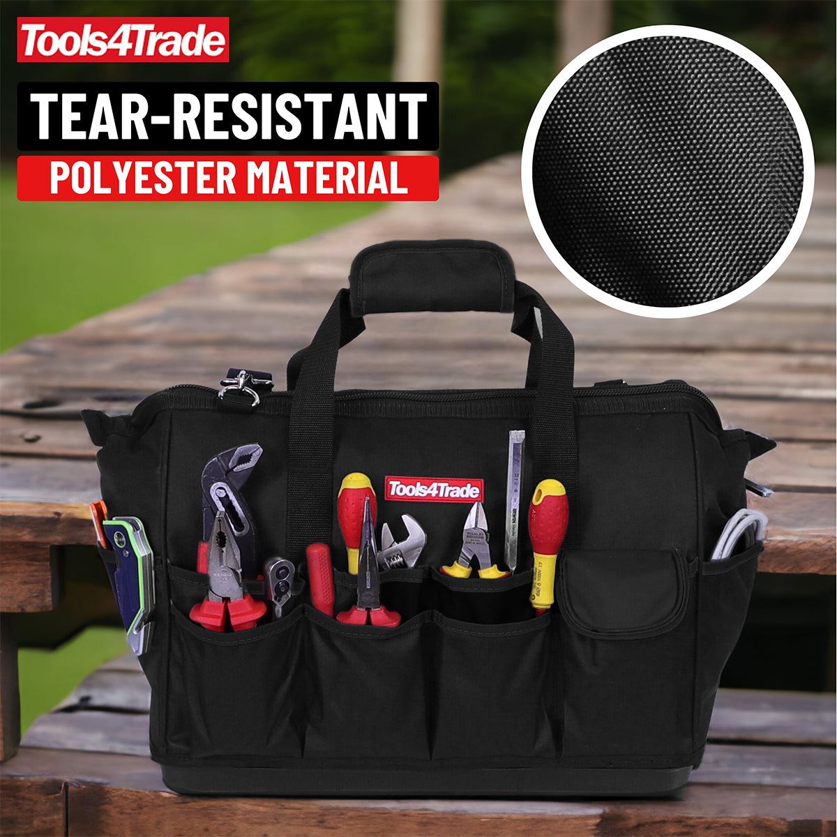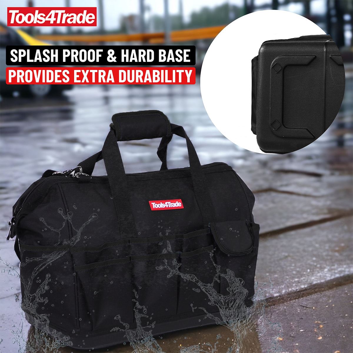 Model : Tools4Trade 18″ (45cm) Tool Bag with Multi-Pockets & Hard Base – Black
