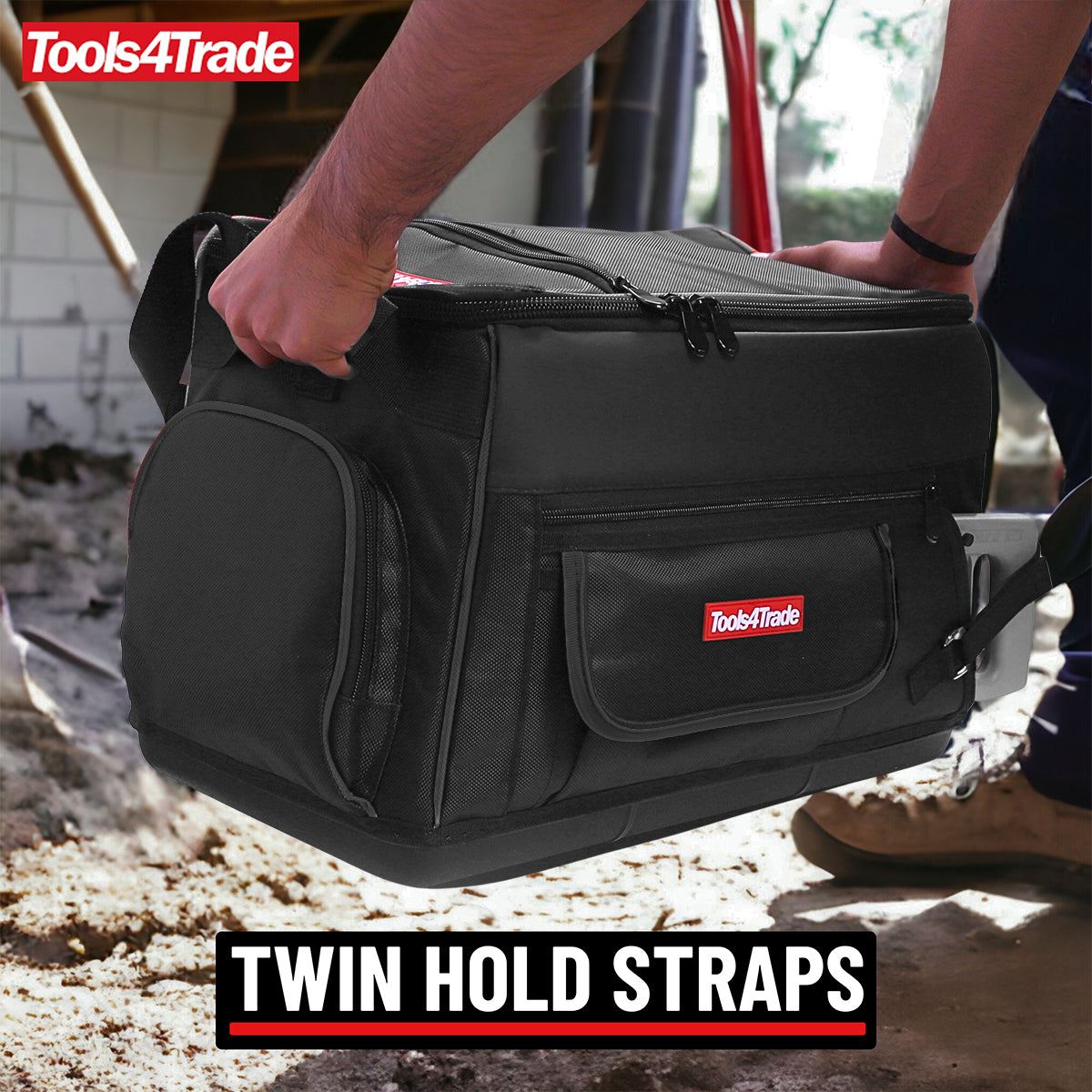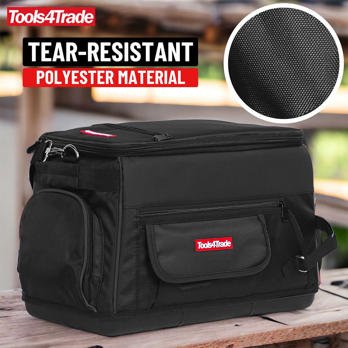 Model : Tools4Trade 20″ (50cm) Heavy-Duty Tool Bag with Multi-Pockets & Hard Base – Black