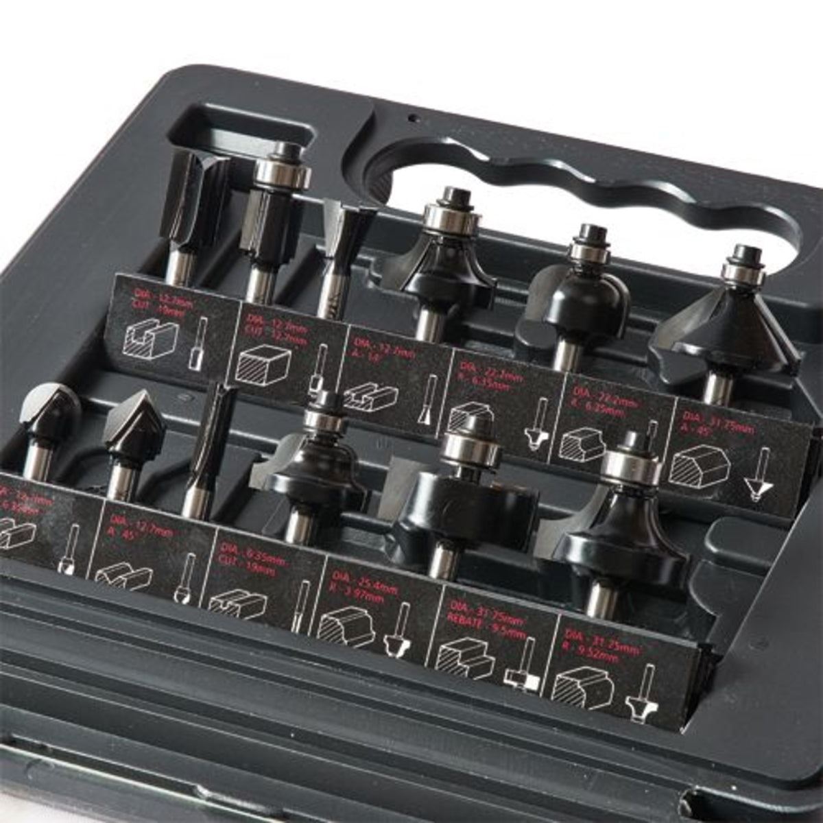 The Trend SET/SS8X1/4TC 1/4-inch is a 12-piece Router cutter set that contains a range of popular tungsten carbide-tipped cutters for a variety of applications.